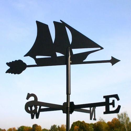 Vejrhane med sejlskib i virkelig god kvalitet til opsætning på tagryg, altan eller i haven m.m. Fremstillet i 1,2 mm. stålplade med præcis laserskæring. Kraftig vejrbestandig overfladebehandling i sort pulverlak. Vejrhanen har flere monteringsmuligheder og derfor er det muligt at montere den på taget, men også at bruge den som havedekoration.