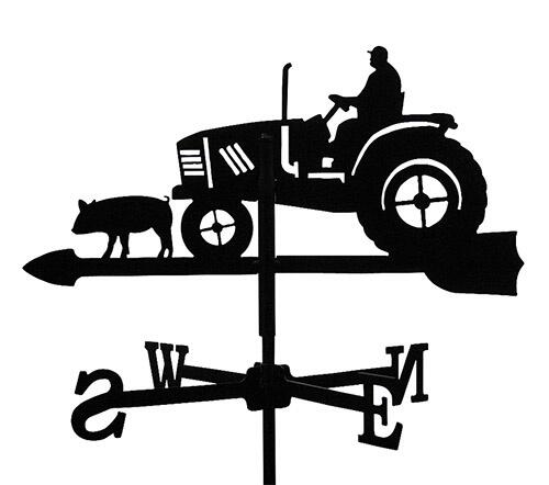 Vejrhane med traktor i virkelig god kvalitet til opsætning på tagryg, altan eller i haven m.m. Fremstillet i 1,2 mm. stålplade med præcis laserskæring. Kraftig vejrbestandig overfladebehandling i sort pulverlak. Vejrhanen har flere monteringsmuligheder og derfor er det muligt at montere den på taget, men også at bruge den som havedekoration.