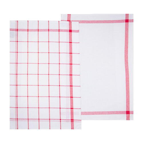 Her får du bomulds viskestykker fra franske Atmosphera. Leveres i 2-pak, der er fremstillet i 100% bomuld med forskellige mønstre i rød/hvid. Forsynet med kraftig hjørnestrop til ophæng.
